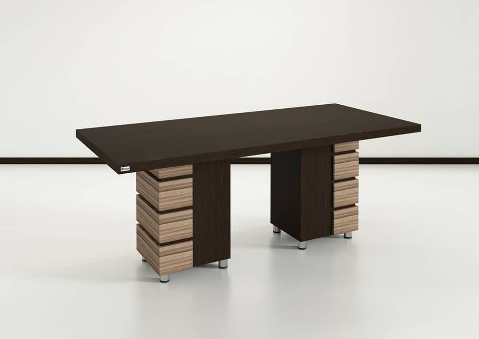 شکل پایه بسیار منحصر به فرد است و زاویه مثلثی شکل دارد. قابلیت انتخاب رنگ صفحه و پایه برای تمامی مدل های میز کنفرانس فراهم شده است . همچنین خریداران لوازم جانبی میز خود اعم از فایل، کردنزا، کتابخانه و ال میز را می توانند با مدل انتخابی از چوب فروش در یک فاکتور سفارش دهند.