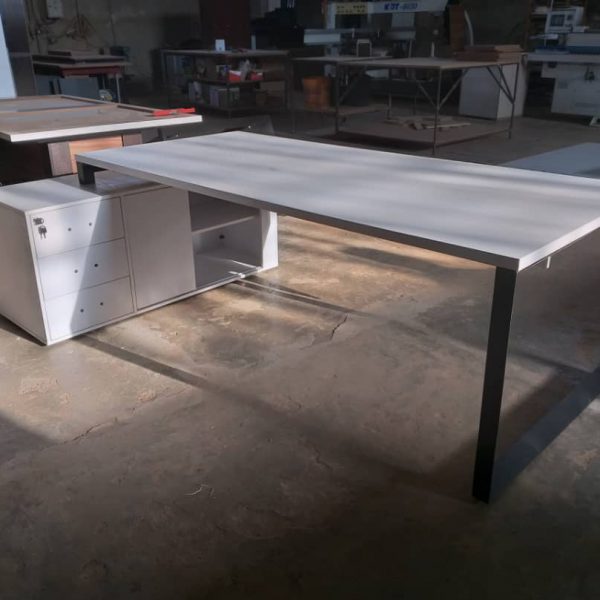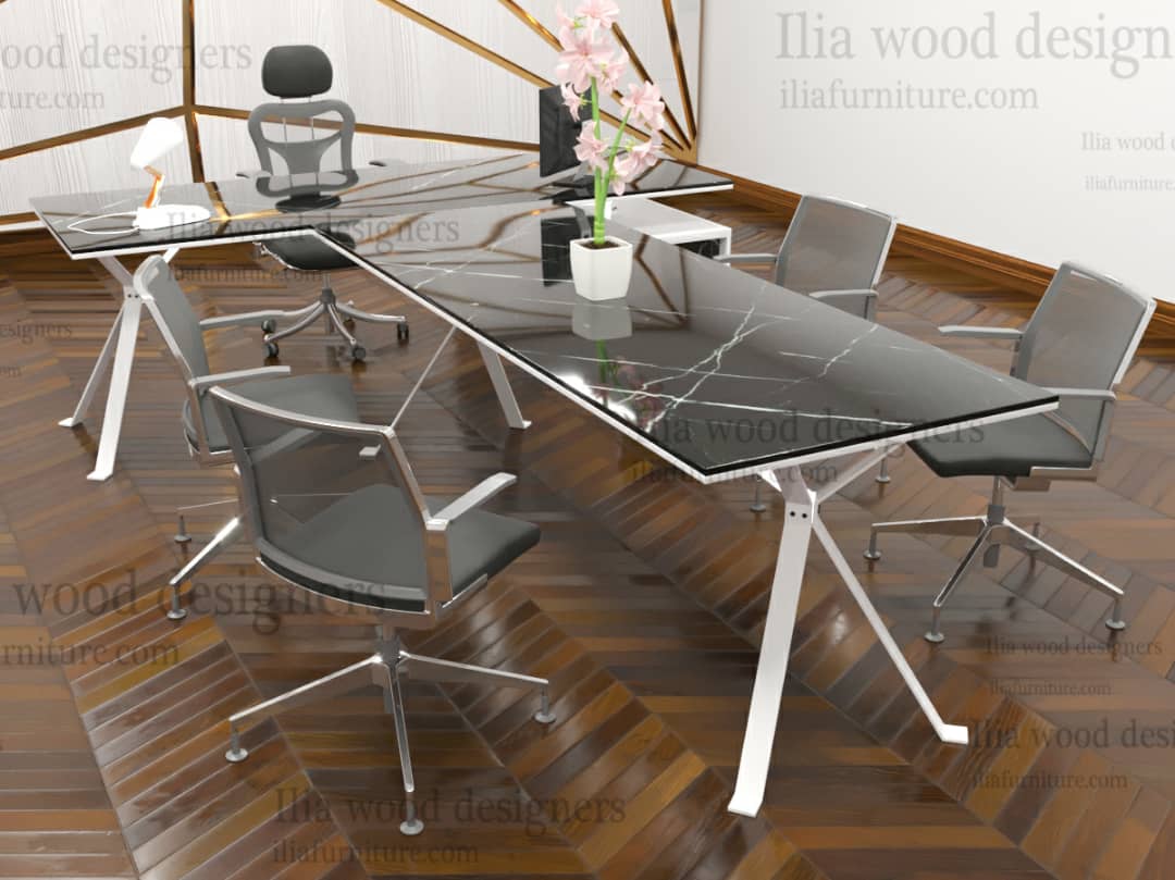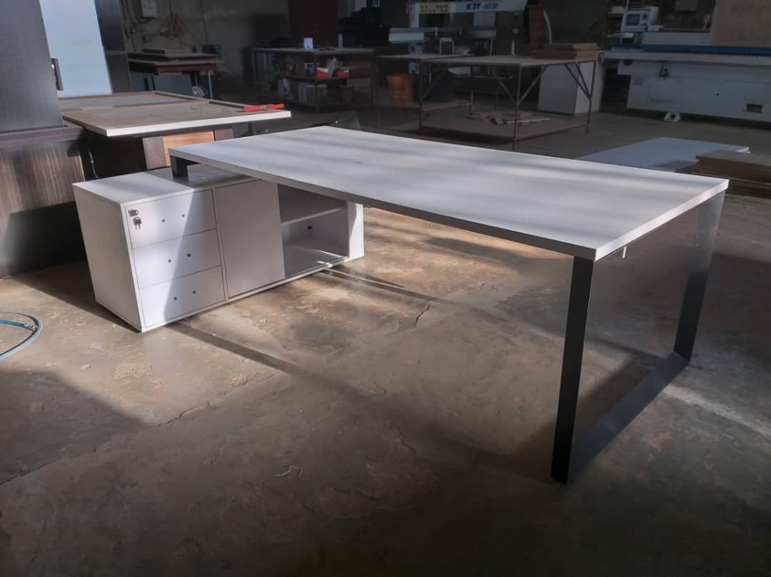 شکل پایه بسیار منحصر به فرد است و زاویه مثلثی شکل دارد. قابلیت انتخاب رنگ صفحه و پایه برای تمامی مدل های میز پایه فلزی فراهم شده است . همچنین خریداران لوازم جانبی میز خود اعم از فایل، کردنزا، کتابخانه و ال میز را می توانند با مدل انتخابی از چوب فروش در یک فاکتور سفارش دهند.